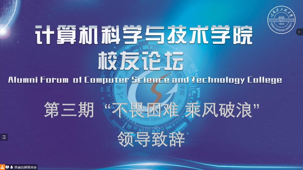 10月5日,由哈尔滨工程大学计算机科学与技术学院主办的第三期校友论坛顺利召开。本次论坛邀请到了我院2009届校友、杭州海哲爱科技有限公司创始人兼CEO胡光总经理。计算机科学与技术学院副院长董宇欣及相关教师代表参加了论坛。根据疫情防控的需要,本次论坛以线上会议的形式召开,近200名师生参加了会议。
