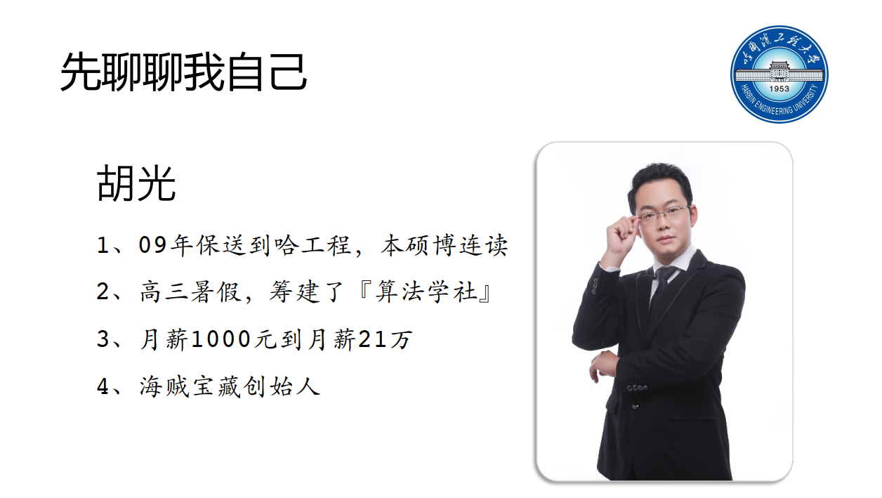 胡光学长在校读书期间,积极参与ACM国际大学生程序设计竞赛等各类算法竞赛活动,作为核心成员带队取得我校第一枚亚洲区的ACM竞赛金牌,并多次代表学校参加ACM全球总决赛,为学校、学院争光。毕业至今,曾就职于百度、异构智能(美国硅谷)等大型企业科研部门,担任高级算法研发工程师。后受邀成为某头部教育企业核心管理人员。