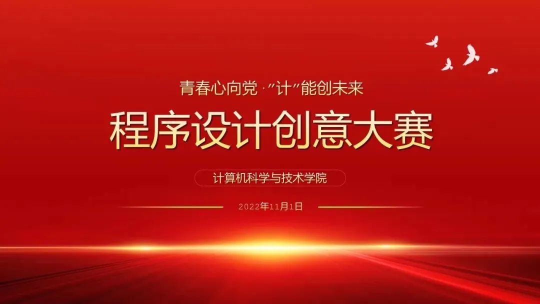 为激发学生学习计算机领域专业知识与技能的兴趣,探索党建和专业教育融合的新模式,以实际行动为党的二十大献礼,计算机科学与技术学院特举办程序设计创意大赛。