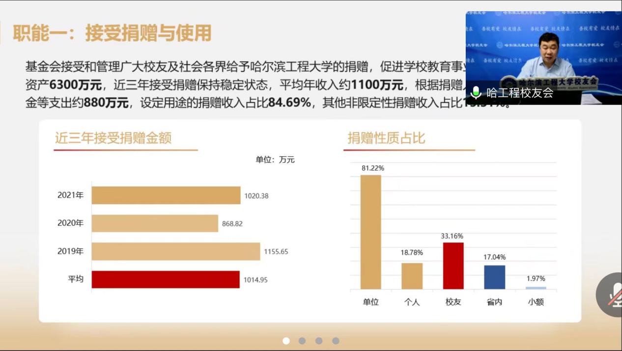 郭峰简要介绍了学校校友会和教育发展基金会的理念和职能,并以案例形式解读了基金会的特色项目和公益捐赠的相关政策,同时感谢计算机学院对学校“工学校友智慧校友系统”项目研发的大力支持。他指出广大校友是母校声誉的坚定捍卫者,是提升学校声誉的潜在资源。他希望学院以校庆工作为契机,不断串起学校、校友、企业、社会发展关系链,推进学校学院各项事业更好更快发展。