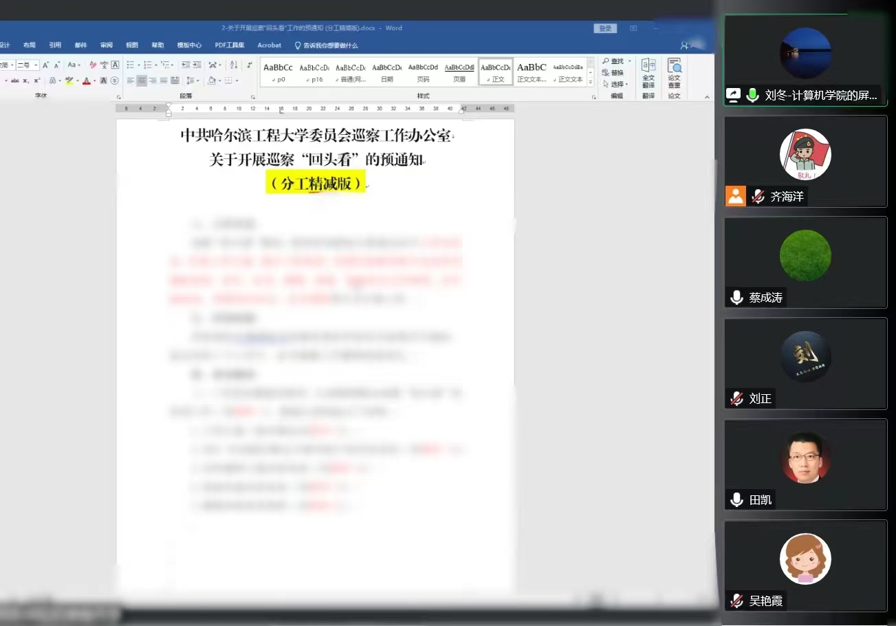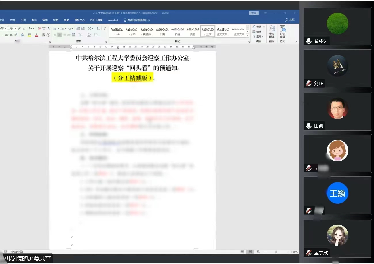 刘冬要求,要切实加强组织领导,认真配合完成巡察“回头看”的各项工作,提前准备调阅材料。同时,积极协调召开巡察“回头看”计算机科学与技术学院动员会及汇报会,并结合会议要求,分工负责,有序组织。