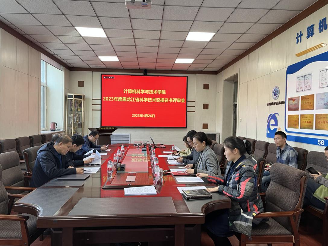 2023年4月26日,计算机学院召开本年度首轮黑龙江省科学技术奖提名书评审会。本次评审会采取会议评审和通讯评审相结合的方式,通讯评审专家由杨武教授担任,会议评审专家由黄少滨教授、王巍教授、张立国副教授担任。科研院副处长刘铁,拟申报奖项负责人韩启龙,团队成员张海涛、赵英男和其他拟报省部级奖项教师代表杨东梅、王勇,科技办姚巍参加了本次会议。会议由科技办主任陈潜心主持。