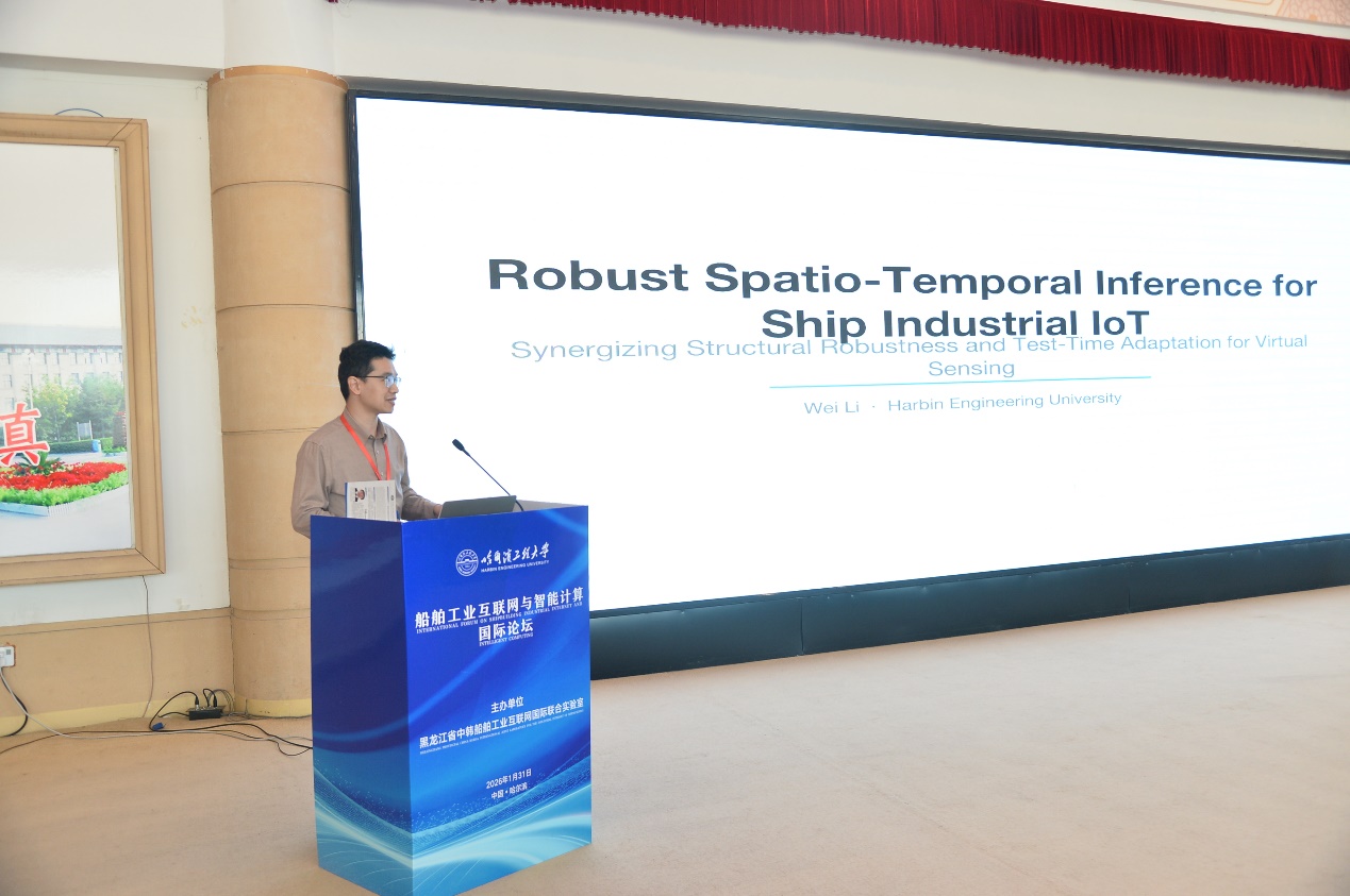 李伟教授以《Robust Spatio-Temporal Inference for Ship Industrial IoT:An Integrated Framework for Imputation, Forecasting, and Interpolation》为题作报告。他提出了一套面向船舶工业物联网的鲁棒时空推断一体化框架,该框架通过四项核心创新,有效解决了动态数据缺失、变量级完全缺失以及在未知图结构上进行预测与插值等关键难题,显著提升了系统在复杂实际场景中的部署可靠性。