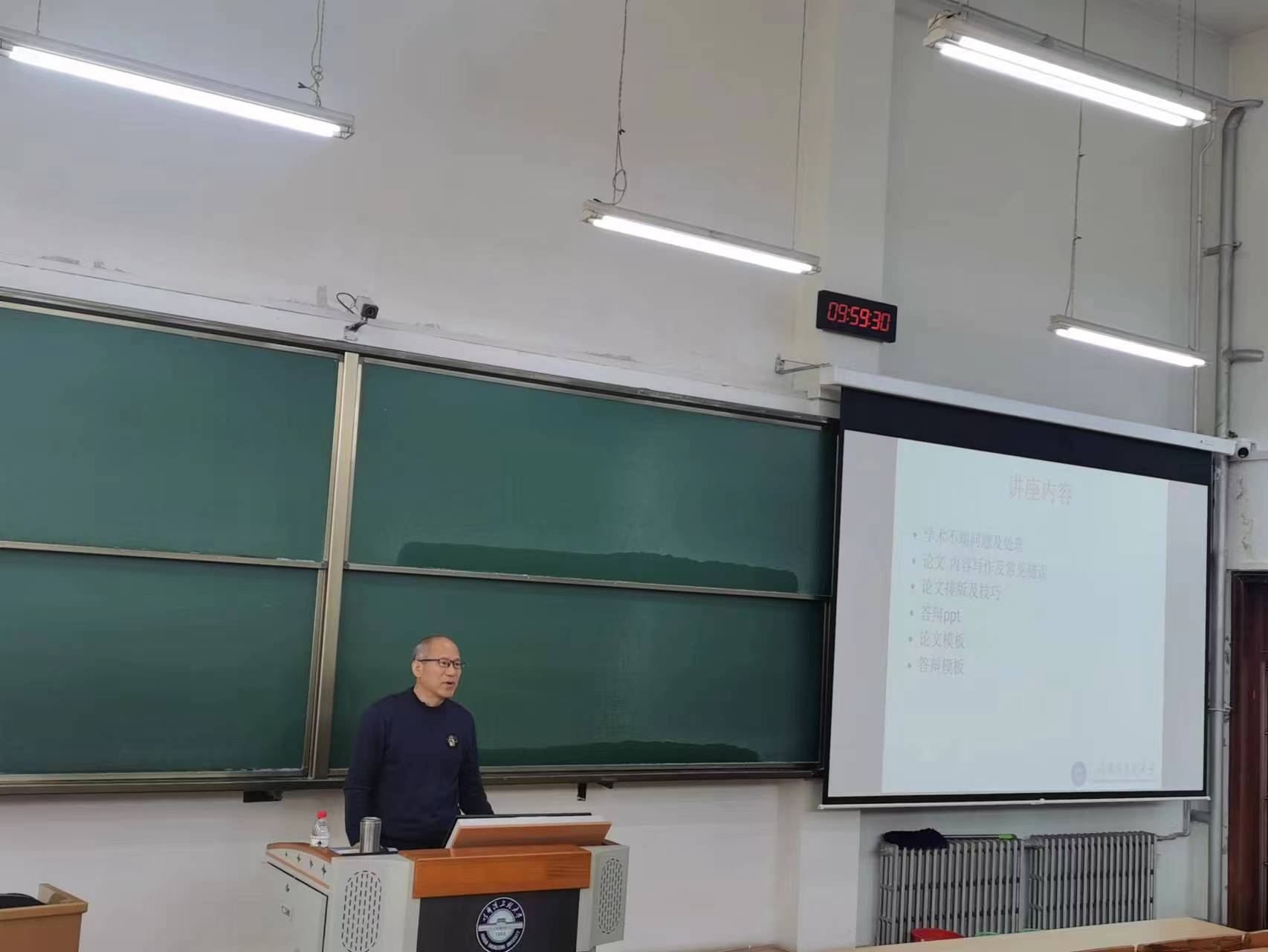 李健利老师主要从学术不端问题、论文撰写内容及常见错误、论文排版技巧、答辩PPT等方面开展讲座。强调了教育部有关《本科毕业设计抽检办法》的内容,重点强调学术不端问题的严重后果;讲授了论文的逻辑结构、内容、摘要等写作要点;讲解了论文的排版要求,包括字体、字号、表格、公示、参考文献等内容,全方面讲授了本科毕业设计论文的撰写技巧。