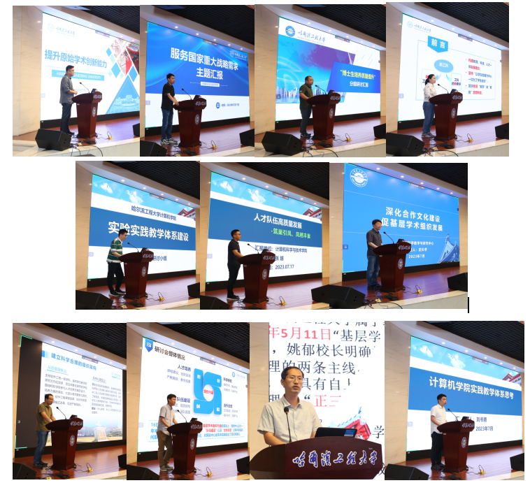 党委副书记刘正以“学生工作的转型与再思考”为主题进行汇报,阐述新形势下学生工作“兴趣+能力+使命”转型理念,强调下一阶段学生工作重点任务,构建育人新模式——“一站式”学生社区,提出多样化学生工作特色举措,为学院人才培养质量提升拓宽新思路。副院长董宇欣就“计算机对外合作转型发展”进行汇报,指出站在新的历史时期,需要学院对外交流与合作开辟新赛道、迸发新动能、打造新格局,希望全院上下凝心聚力,抢抓开放机遇,持续提升学院国际化水平,共同打造学院对外交流与合作新格局。副院长田凯以“狠抓‘源’头,建牢‘基’础,落实落细学院工作”为主题,从加快师源引进速度、提高生源质量、摸清家底提高共享收入、做实做强基层学术组织等四个方面作报告。副院长王巍就“呼应时代要求,强化转型意识 强力服务支撑高水平科技自立自强”进行汇报交流,提出学院学科发展三年行动方案,进一步优化学科方向布局,培育标志性基础研究成果,进一步做大做强科研平台,汇聚高质量科研资源。副院长吴艳霞以“自我提升,强化落实推动教育可持续高质量发展”为主题,从新工科建设和教育改革出发,坚持教育、科技、人才一体化发展理念,创新体制机制、深化教育教学改革,智慧化赋能,形成与数字时代相适应的教育体系,提高人才培养质量。