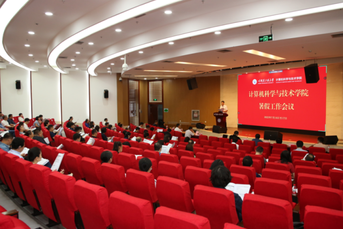 为深入贯彻落实第五次党代会精神,扎实推进主题教育走深走实,践行“六个必须坚持”,深化“十个抓落实”,落实学校暑假工作会议精神,聚焦“五个行动方案”,谋实策、出实招、见实效,统一思想、凝聚共识,奋力开创学校学院高质量发展新篇章,计算机科学与技术学院于7月16日、17日召开暑假工作会议。党委常委、副校长於志文,本科生院副院长刘海波,研究生院副院长冯光升出席会议,院党委书记刘冬主持会议,全体教职工参加会议。