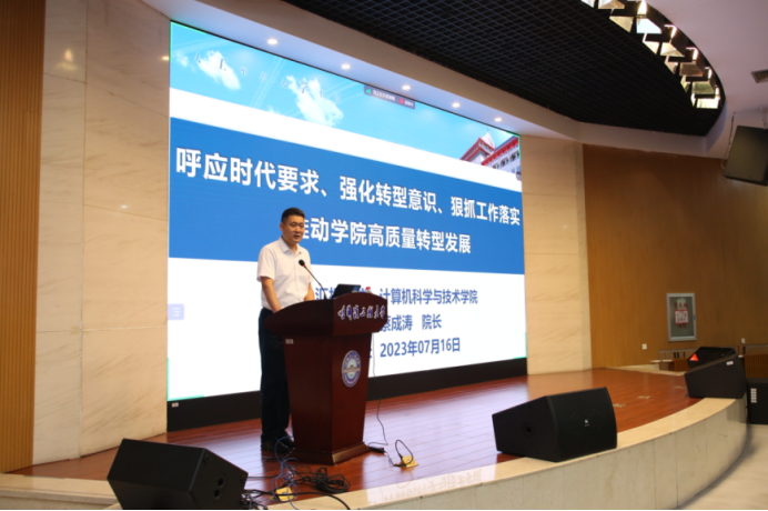 7月16日上午,院长蔡成涛作题为“呼应时代要求、强化转型意识、狠抓工作落实 推动学院高质量转型发展”的专题报告,解析学院第五轮学科评估成绩,针对学院当前发展问题思考,明确学院未来转型方向。希望在全院师生共同努力下,破除路径依赖转向高质量,坚持“回归立德树人初心、回归教书育人本分、回归科技创新本源、回归教育强国梦想”的价值导向,践行“一切为了学生成长”“教授就是大学”“办学就是办环境”的办学理念,全员发动,狠抓落实,推进“五个行动方案”落地见效,高质量推动学院转型发展。