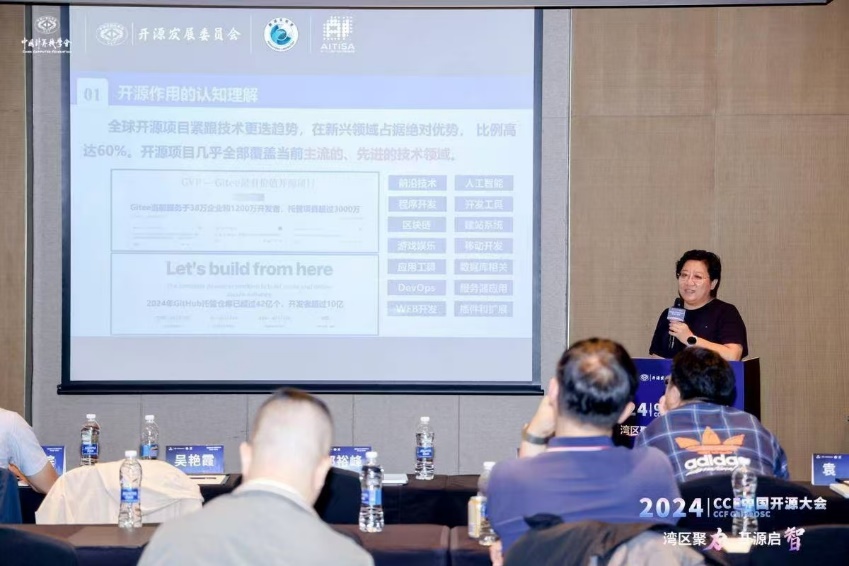 11月9日-10日,2024CCF中国开源大会技术论坛在深圳召开。大会以“湾区聚力 开源启智”为主题,汇聚国内外学术界、顶尖科技企业、科研机构及开源社区的精英力量,共同探索人工智能技术和人类智慧的无限可能,推动技术创新与产业升级。我院副院长吴艳霞出席大会,并在开源工业软件产教融合生态分论坛作题为《面向国家需求探索开源开放育人体系》的报告。