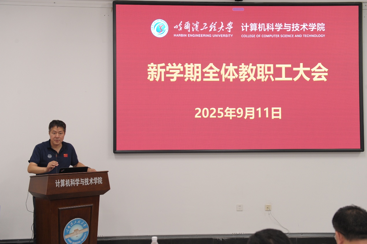 2025年9月11日,计算机科学与技术学院在21B 4127会议室召开2025年秋季学期全院教职工大会。本次大会由学院党委书记孙荣平主持,学院全体教职工参加大会。