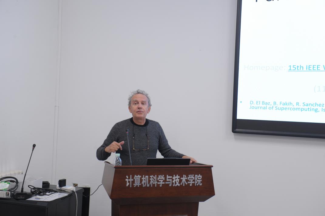 在主题报告环节,DIDIER EL BAZ教授以“多核处理器环境下的并行优化任务”为题,系统阐述了并行最佳优先搜索算法的设计思路与实际应用。他指出,随着现代处理器计算核心数量的持续增加,重新审视并优化经典算法设计,已成为提升复杂应用场景计算性能的关键路径。报告重点介绍了基于最优优先搜索的并行规划算法,该类算法依托异步工作池范式,在多核CPU中实现了良好的线程利用率,能够在多数应用领域中高效求解问题,且不增加额外求解成本。此外,教授还就并行优化领域当前面临的挑战与未来研究方向进行了深入剖析。