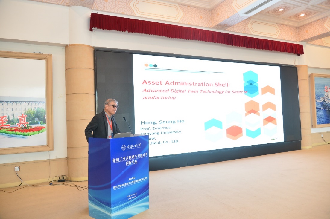 随后,论坛进入主题报告环节。首场报告由汉阳大学Seung Ho HONG教授带来,他以《Asset Administration Shell: Advanced Digital Twin Technology for Smart Manufacturing》为题,深入阐述了在智能制造背景下,实现资产数字化管理与高效交互的关键意义。